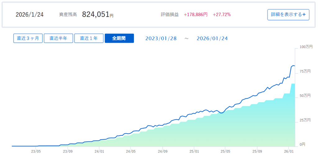 1月26日時点ではトータルリターンが121707円、前回の108714円から12993円増えました。