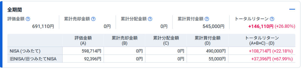 新NISAのみの結果が以下になります▼
