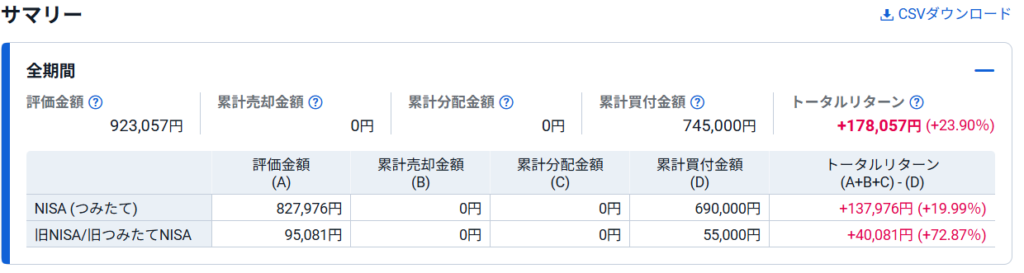 新NISAのみの結果が以下になります▼